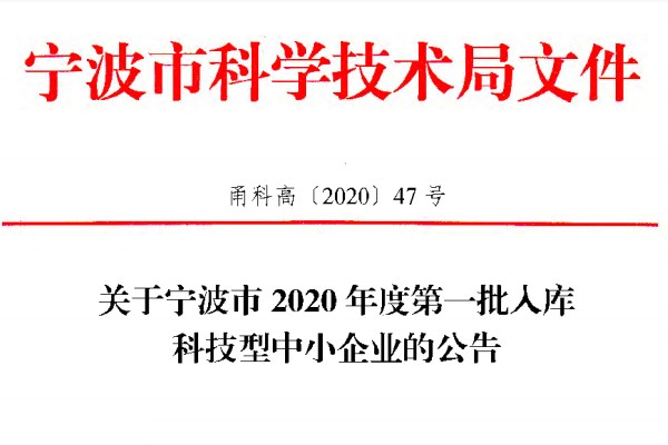 入庫科技型中小企業(甬科高[2018]26號文件);同時評上鄞州區企業工程(技術)中心;